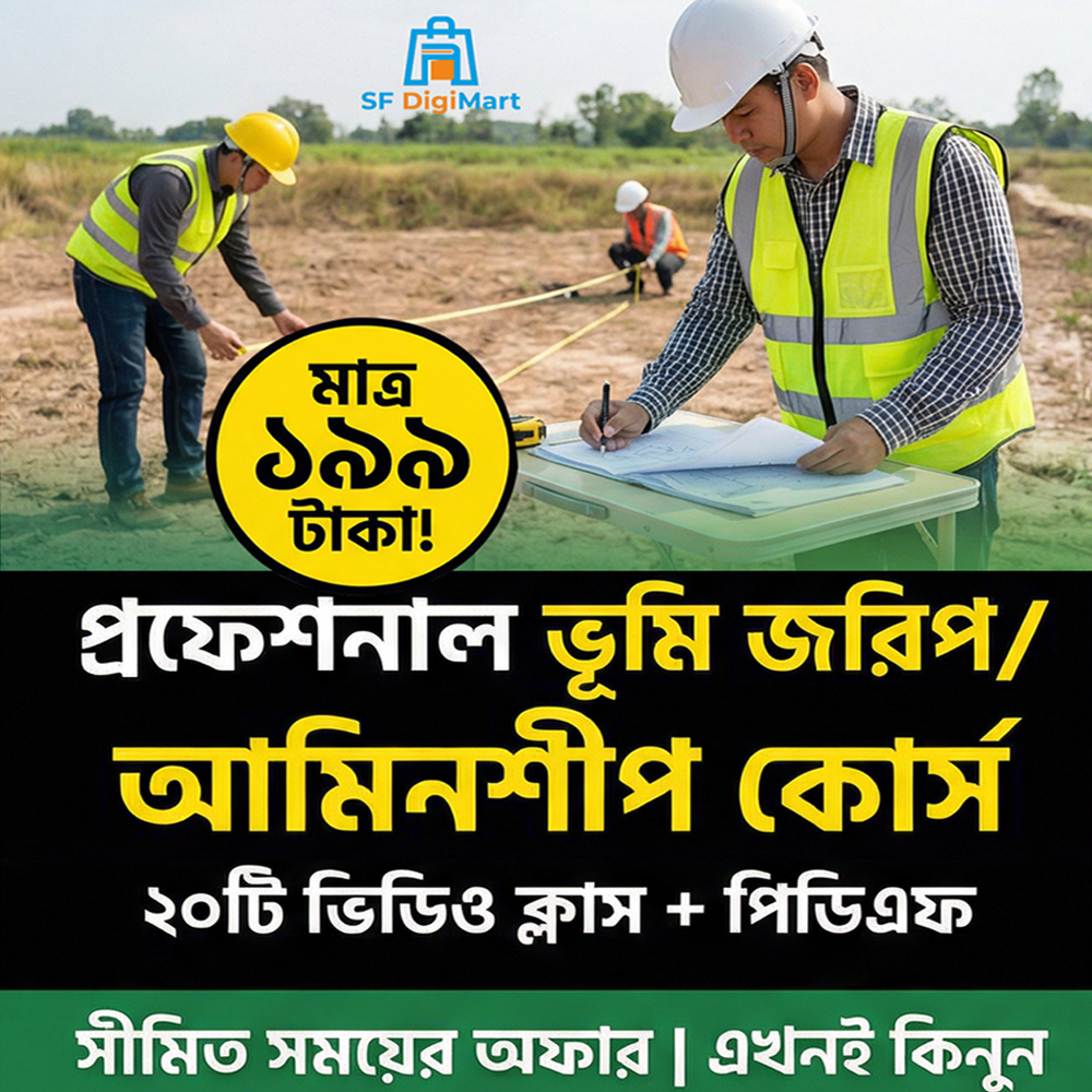 এই প্রফেশনাল ভূমি জরিপ / আমিনশীপ / ডিজিটাল সার্ভেয়ার কোর্সটি এমনভাবে তৈরি করা হয়েছে যাতে একদম শূন্য লেভেল থেকে আপনিও জমির মাপ, নকশা, খতিয়ান ও দলিলের কাজ নিজে নিজেই করতে পারেন—কোনো দালাল বা বাড়তি খরচ ছাড়াই।